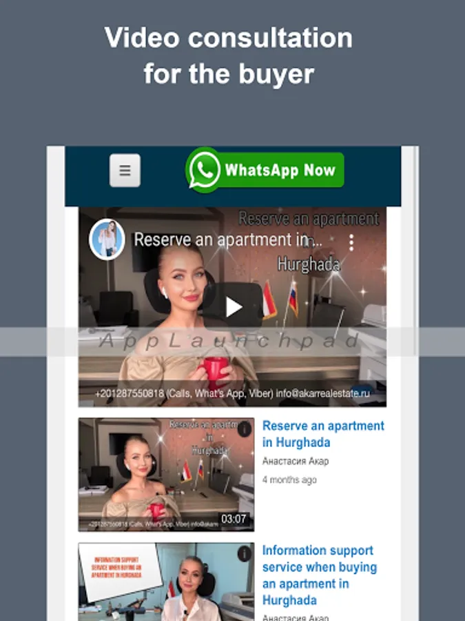 5. Watch video consultations on the process of buying an apartment in Egypt;