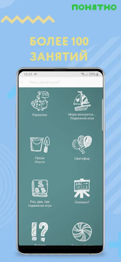Our application is a pocket guide to childhood, which contains the coolest, simplest games, many topics for conversation with a child. For you to understand, our application provides two types of search: the first is by location, wherever you are, namely walking on the playground, playing in the park, cooking in the kitchen, being on the road, or just sitting at home - we have a whole warehouse what you can do at this moment with your child. There are two categories here: the category “what to talk about”, here you can find interesting facts that complement the questions and even tasks on which you and your child will have to reflect, enter into discussions and master the skills of negotiation. At the same time, the category "What to do" - here are collected fascinating experiences, outdoor games, logic tasks, and much more. The second way to search for information in our application - by category - just enter in the search box: experiences, games, and our application will give you a whole list that matches your request. Our platform has accommodated as many as 100 entertaining and exciting "cheating" and "ochempogorilok". This is enough to diversify the whole 100 days of summer, to do one fascinating activity that introduces you to your child, this is enough to remember and learn something new, and not to let your brains melt over the summer, all this will lead you to the fact that you will get to know your child from a new perspective, you will understand how he thinks, what he likes to do, and most importantly, you will spend this time together.