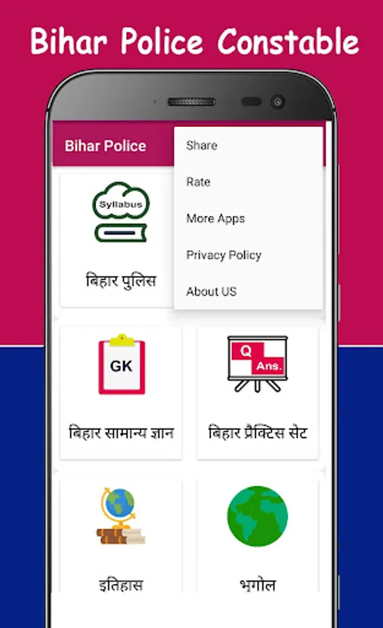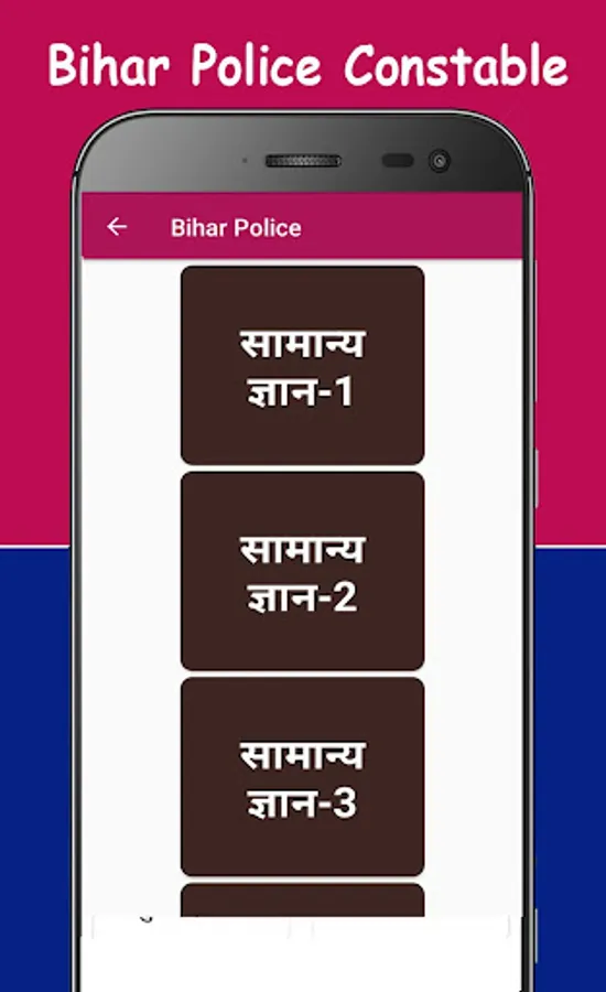This app Bihar Police Constable Exam(CSBC Exam) will provide you all latest syllabus of BIHAR POLICE EXAM which held in every year and conducted by Bihar. This app consists of all learning material and also help you boost your knowledge and achieve your goal.