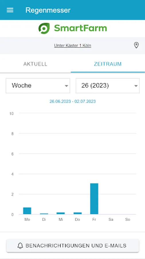 In the case of >1 mm of precipitation in the past 12 hours, you will automatically receive a push notification and e-mail.