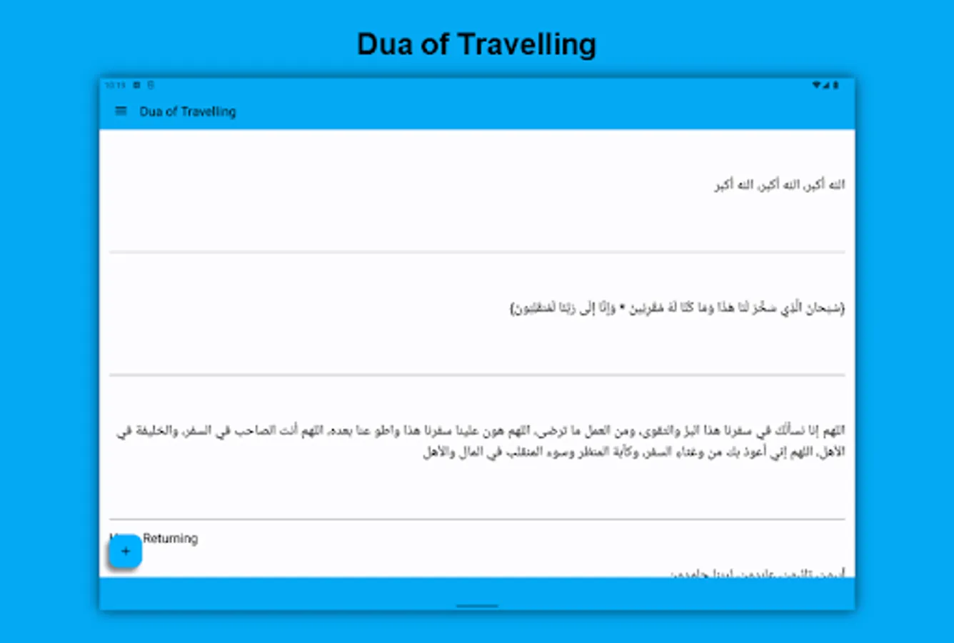 This App "Dua of Travelling" offers a collection of prayers; which are recited while Travelling that are displayed in a modern look and has the following characteristics: