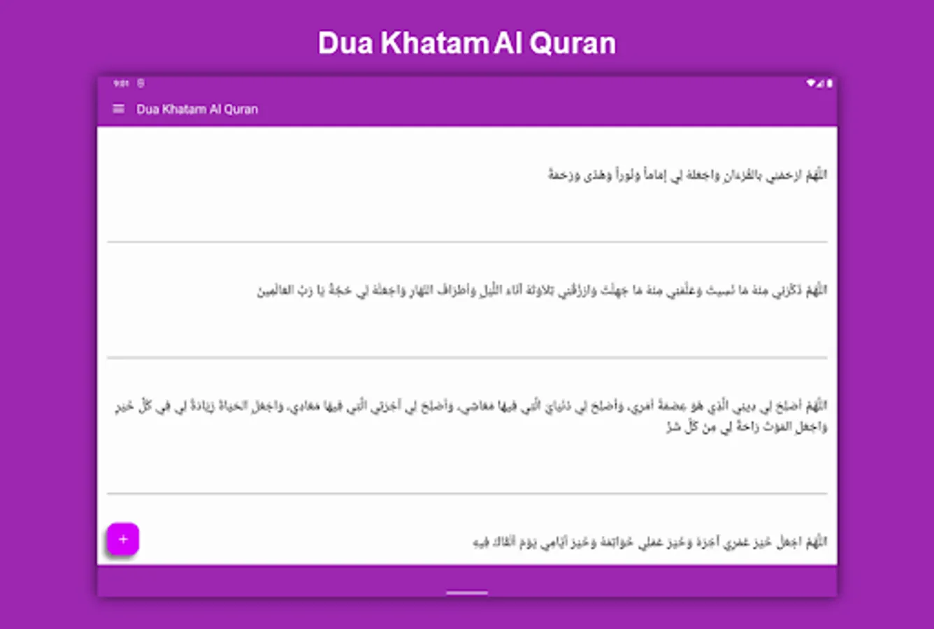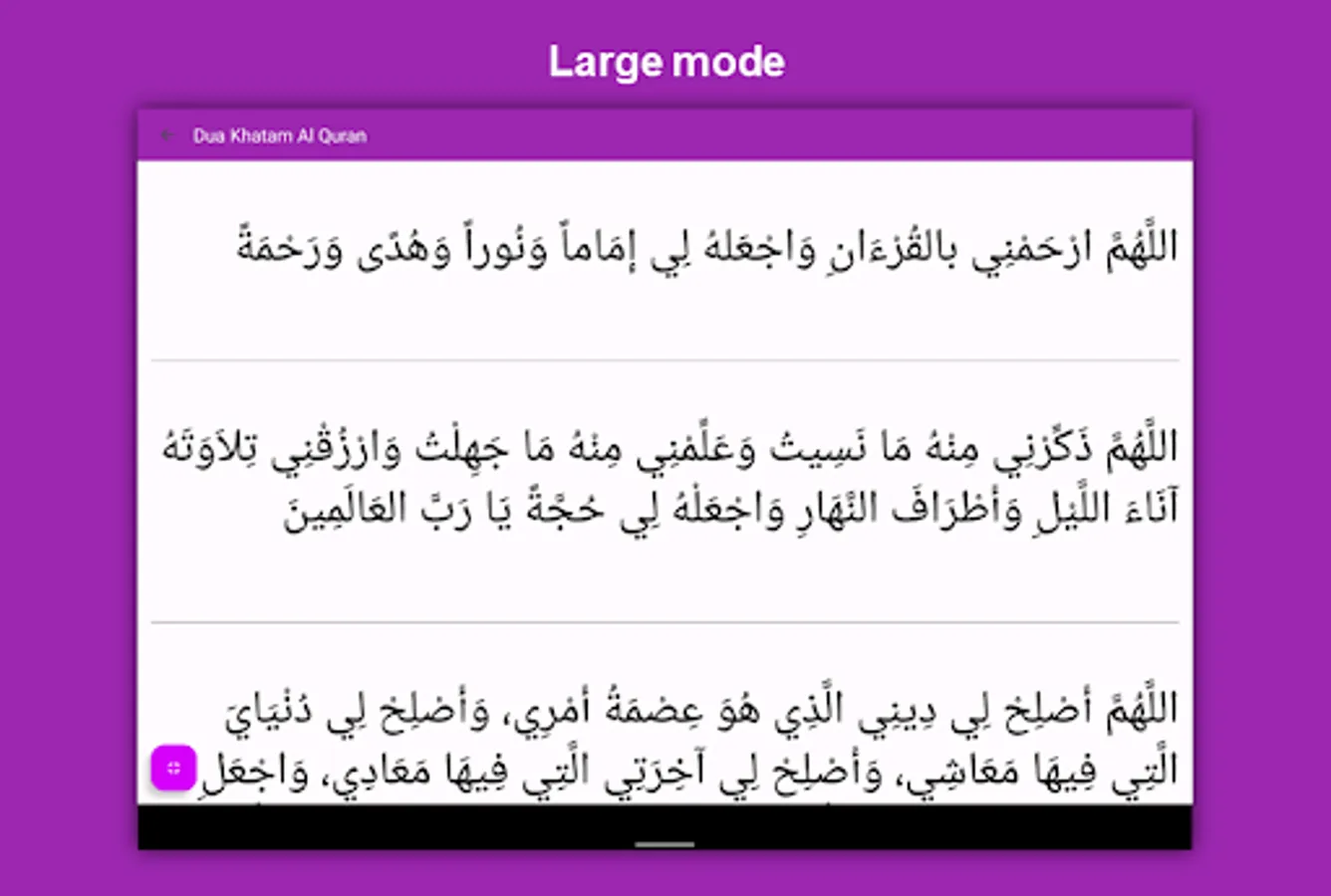 This App "Dua Khatam Al Quran" offers a collection of prayers; which are recited after completing reading the Noble Quran that are displayed in a modern look and has the following characteristics: