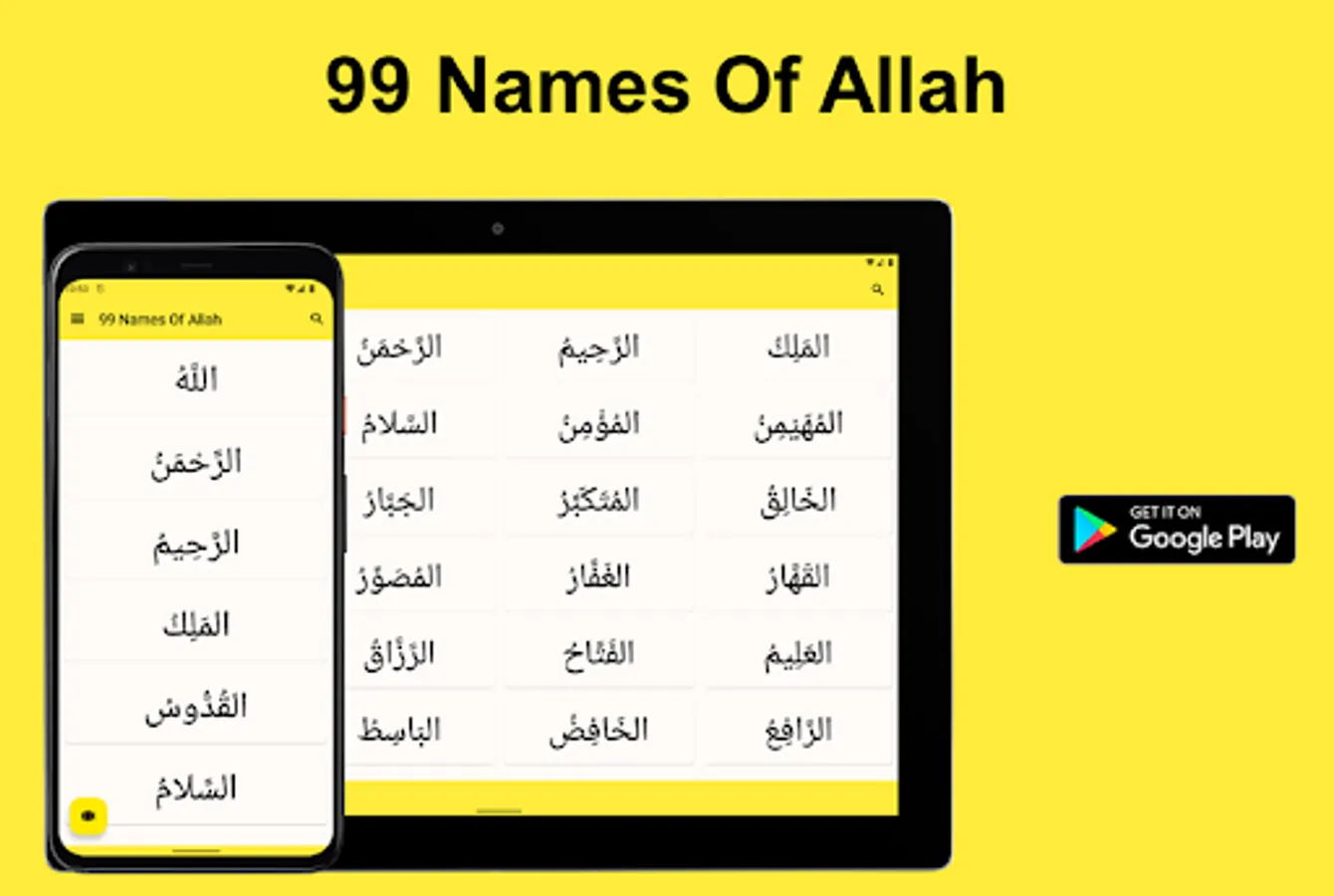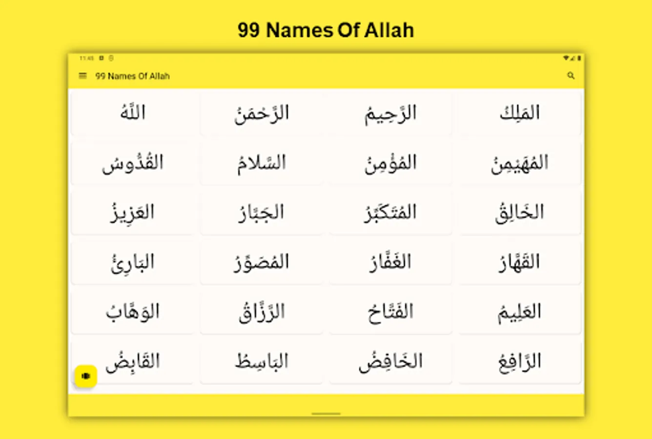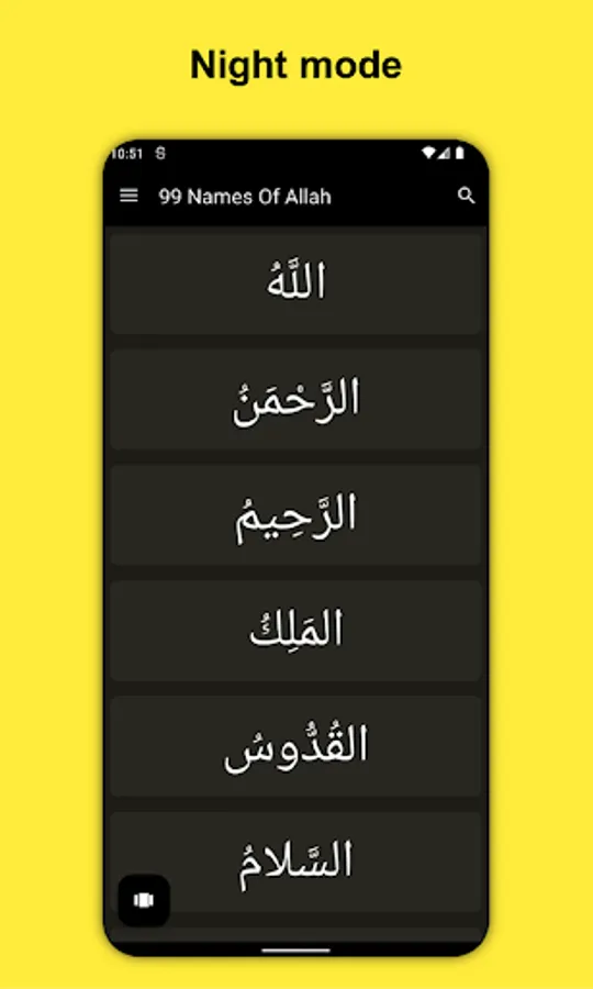This App "Ninety Nine Names Of Allah" offers a collection of Allah names that are displayed in a modern look and has the following characteristics: