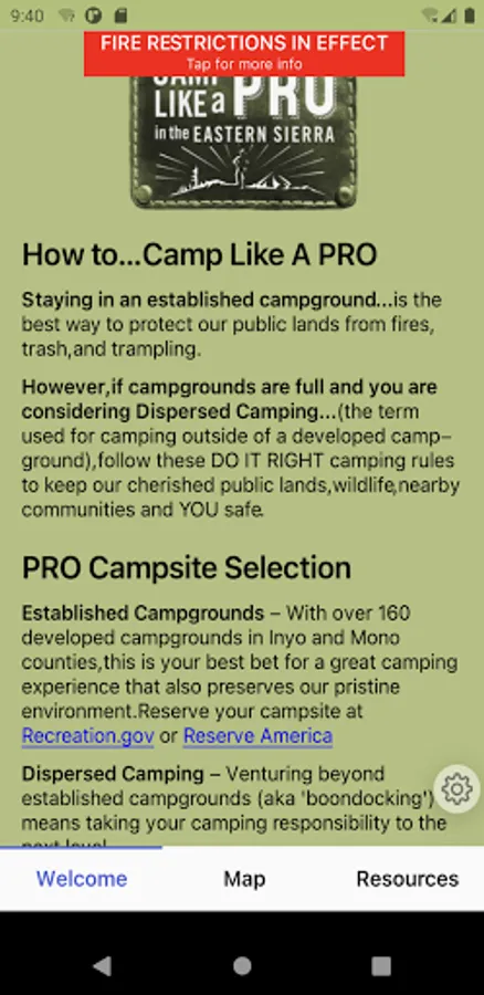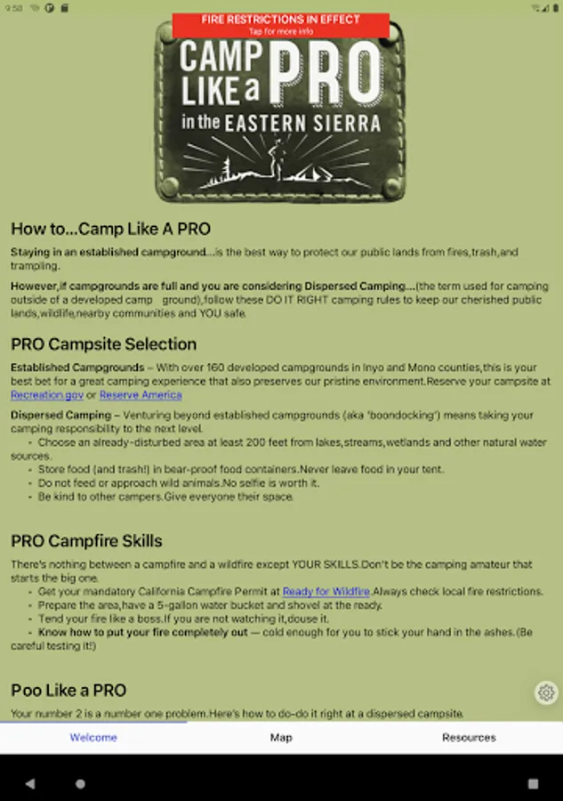 Packed with useful information and local resources this app is an indispensable camping companion if traveling to the Eastern Sierra region of California.