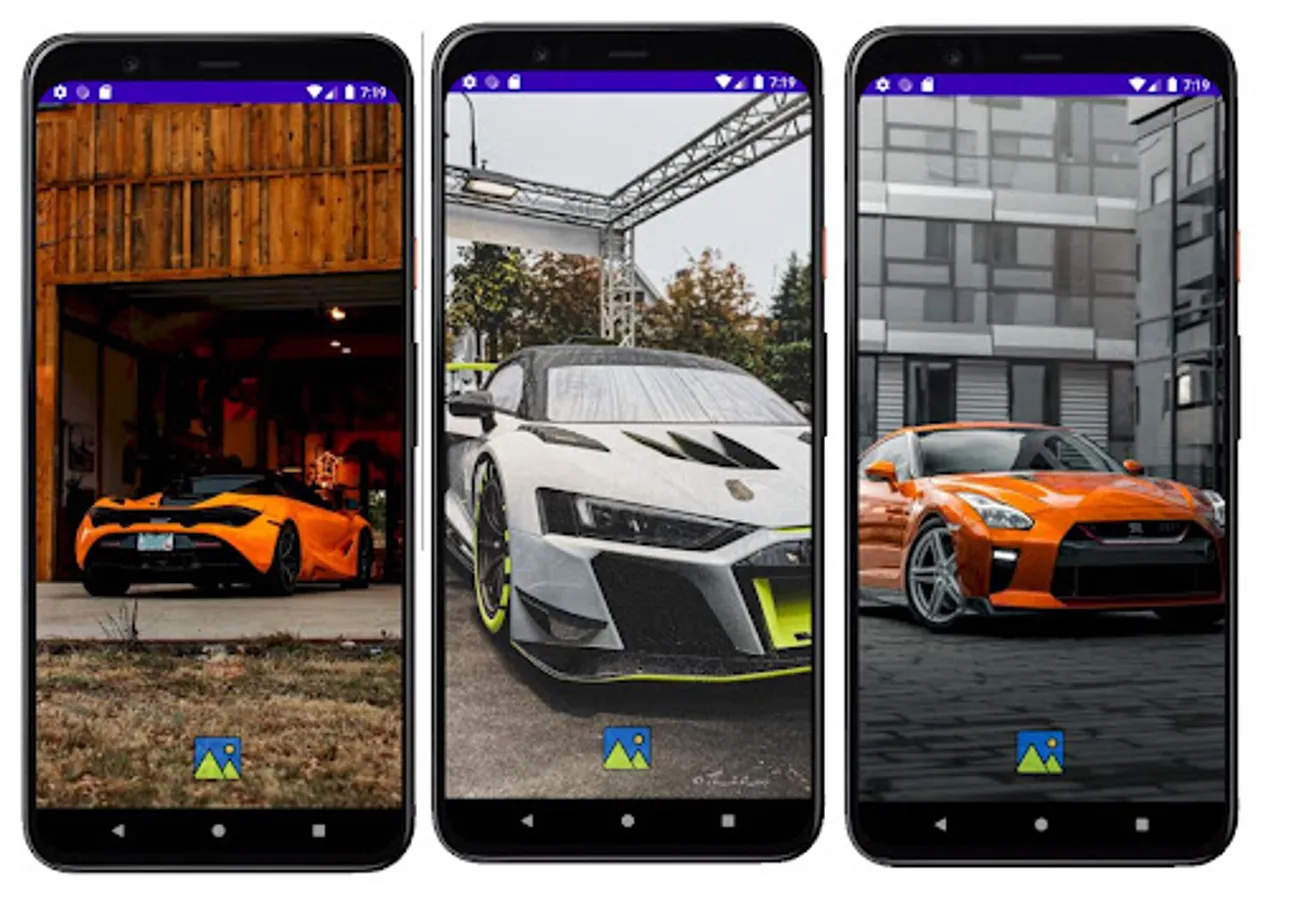 The way of using this app for Android is very easy and intuitive. You will simply have to slide your finger to the right or to the left to go from one photo to the next or previous one. When you have seen the one you like the most, you can set it as your wallpaper with a single click, very easily. The Sports Car image will not be saved in your gallery, since we do not access any resources on your device, in order to guarantee privacy at all times.