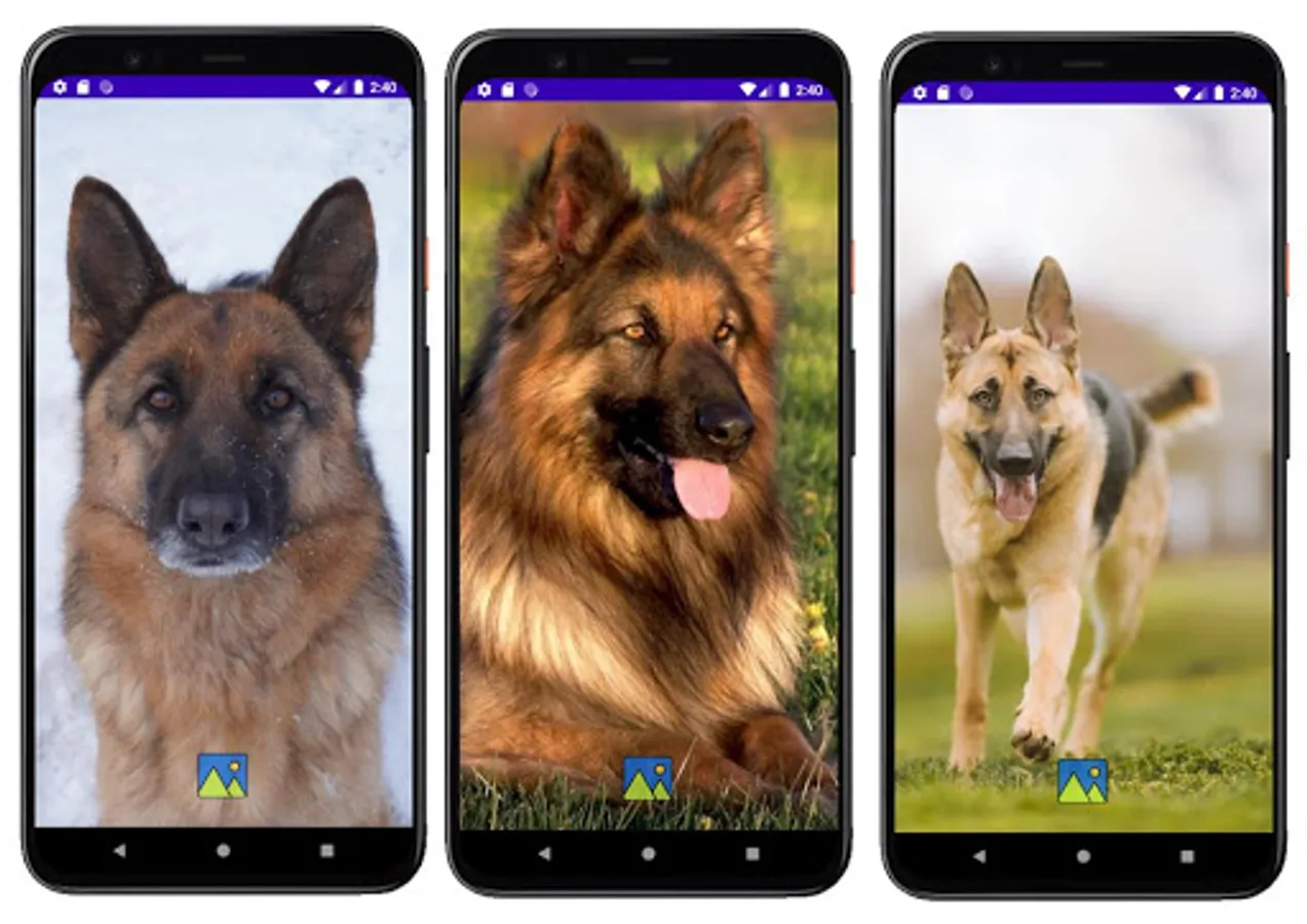 The operation of this German Shepherd dog wallpapers app is very simple. By sliding your finger to the right or left, you could easily switch between photos. When you have selected the one you like the most, clicking on the lower icon will become your wallpaper. One click!