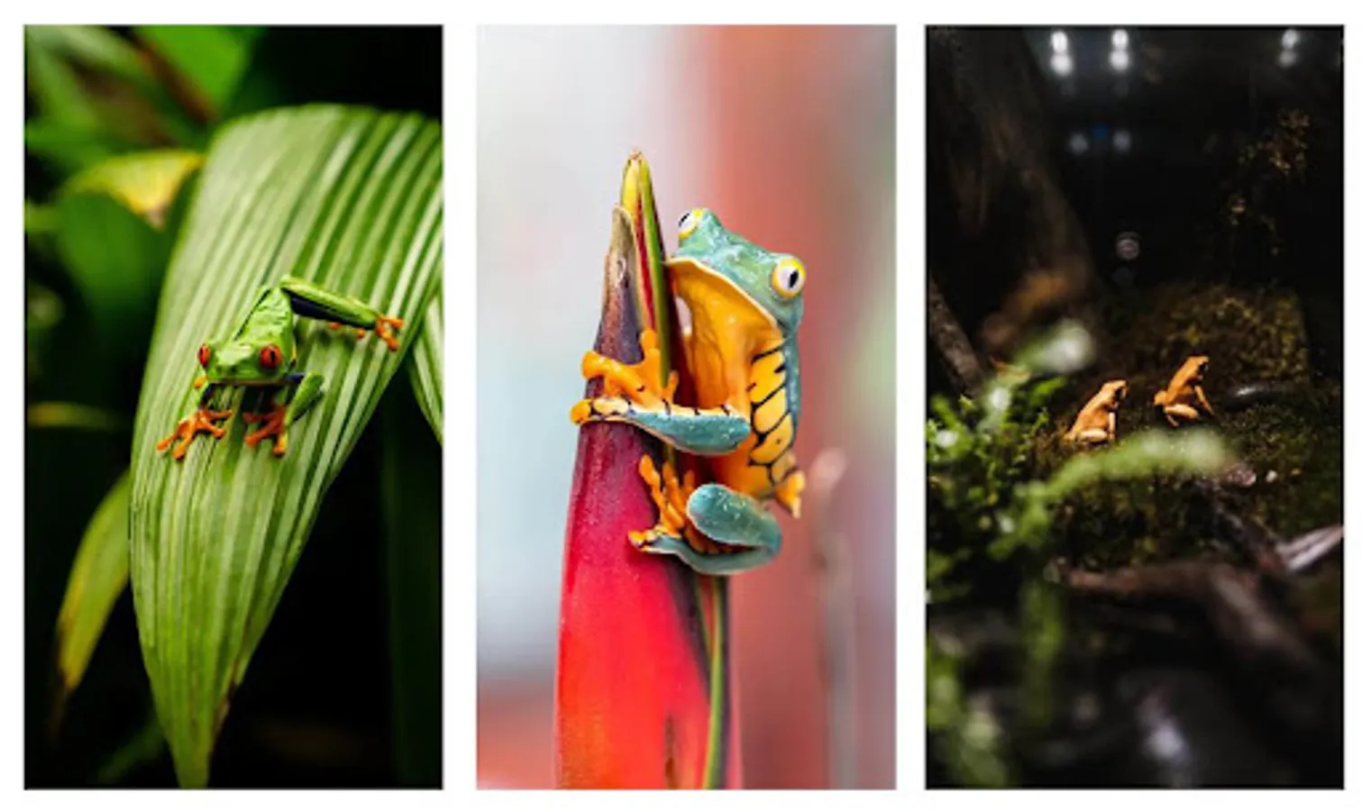 The operation of the app is very simple. All content is available right out of the box and is free. Sliding your finger to the right or left will switch from one frog photo to the next photo. When you find the wallpaper of a frog that you like the most, clicking on the icon at the bottom of the screen will set it as wallpaper.