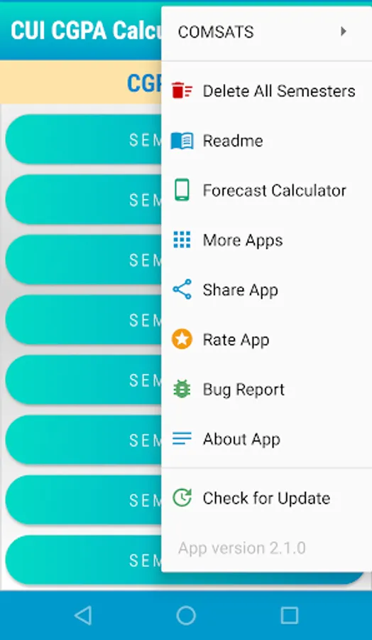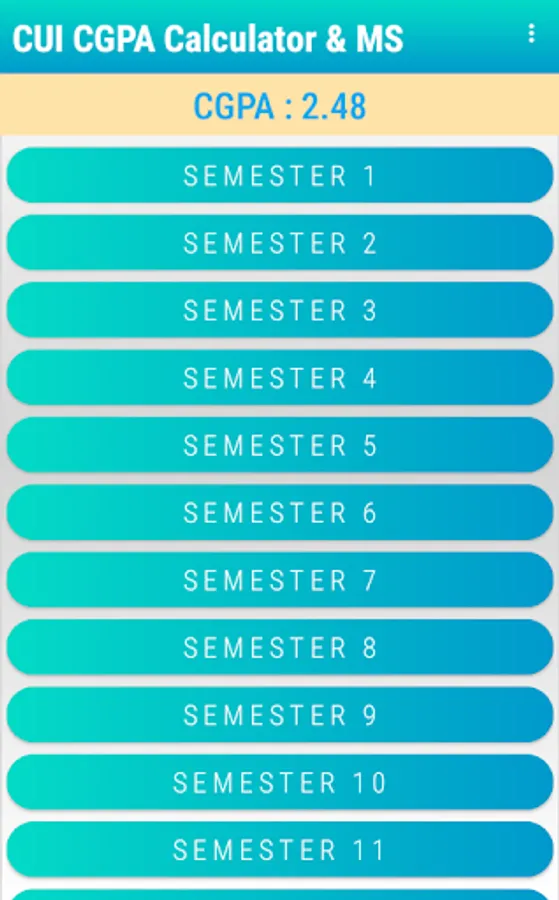 CUI CGPA Calculator & MS is a management system App which can help you predict your CGPA by calculating your desired GPA. Save each semester course grades, credit hours and it will accurately calculate GPA and Cumulative GPA 100% according to COMSATS University. This App works with almost every university CGPA system.