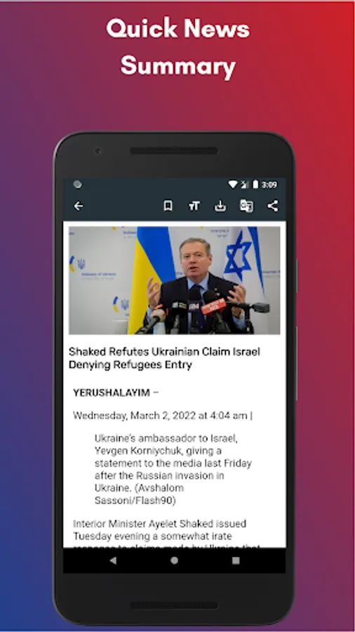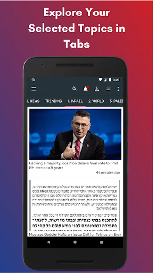 2. Minimal design and less options. Run the Israel News app and read the news.