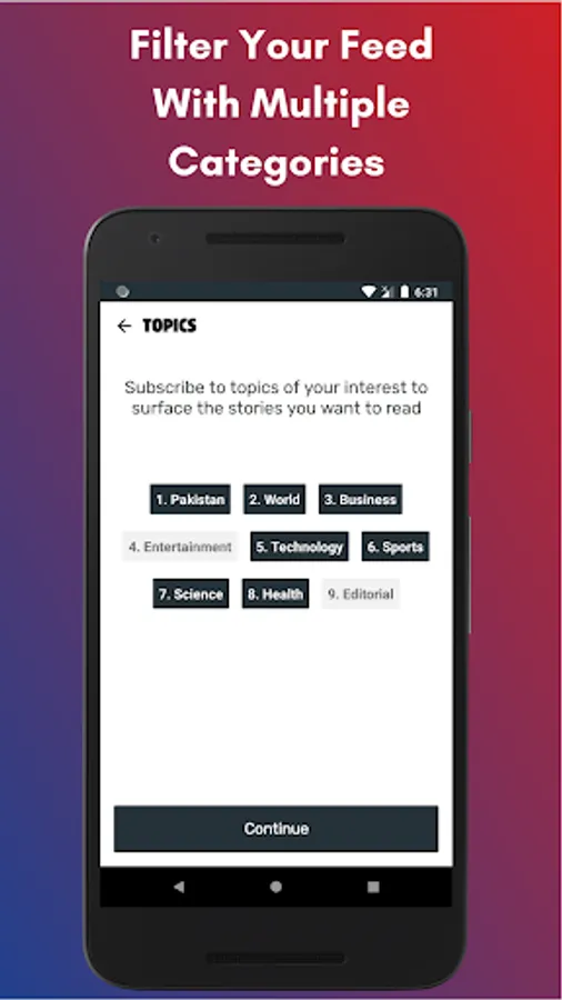 Our user-friendly design and simplified options make news loading instantaneous. Categorized into ten key areas including Pakistan, World, Business, Entertainment, Sports, Science, Technology, Health, and Editorial, you can personalize your feed by turning off topics of less interest to you.