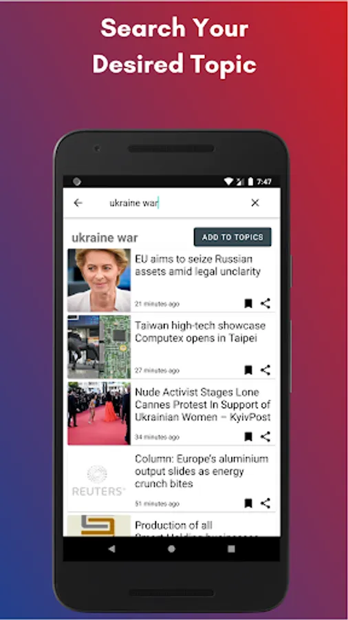 Get instant Russian Ukraine War news alerts & never miss news updates again. This Ukraine News app will fetch you all the breaking Ukraine news from authentic & reliable Ukrainian news papers. You do not need to install app of multiple news sources now as this one app fetches news from all the top Ukraine News sources & list them in one news feed. This not only saves your time but also from a lot of hassle. Be smart & save your time, download this one app to replace all the other Ukraine News apps.