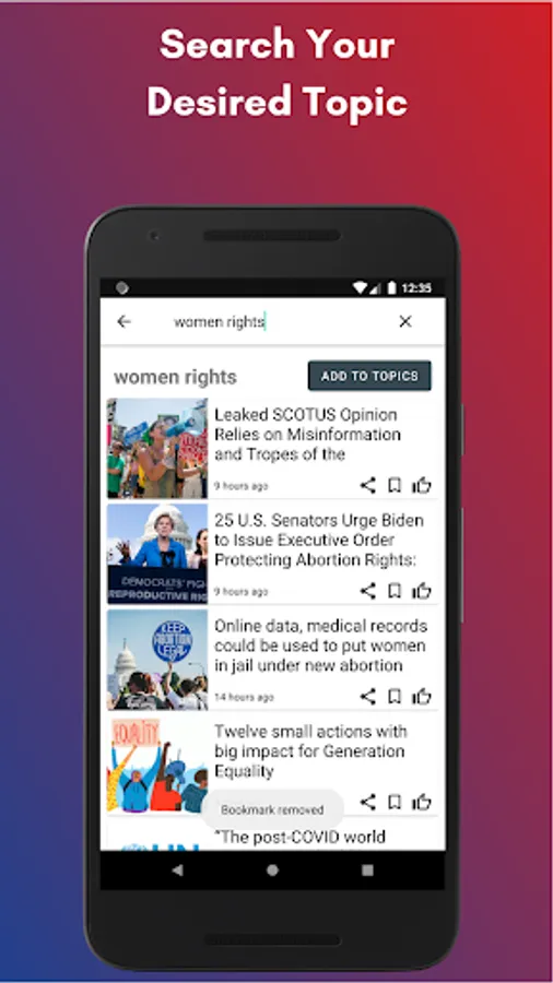 Get instant women news alerts & never miss news updates again. This Women News app will fetch you all the latest women news from authentic & reliable news sources. You do not need to install app of multiple news sources or visit hundreds of websites, now as this one app fetches it from all the top news sources & list them in one news feed. This not only saves your time but also from a lot of hassle. Be smart & save your time, download this one app to replace all other News apps.