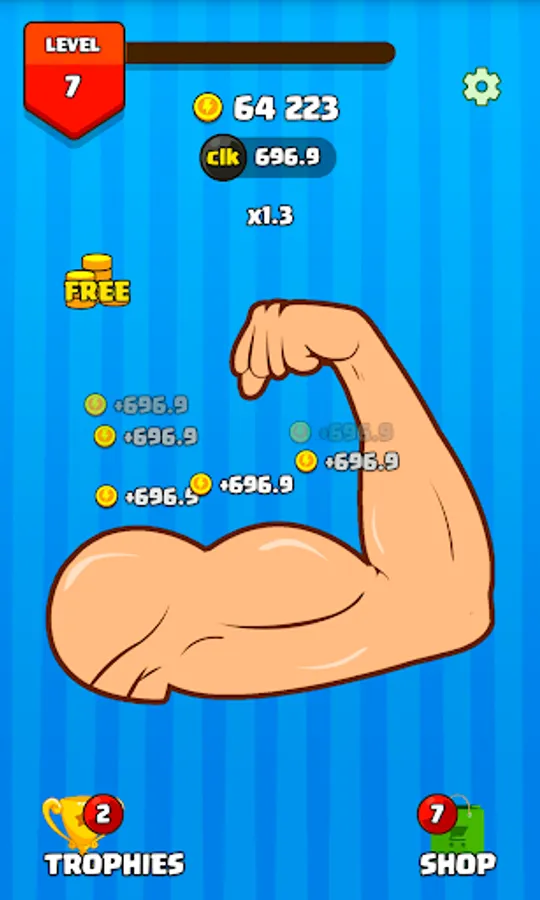Tap on the biceps to become the strongest with our simple game of the genre clicker. Share your strength with friends and let them know that you are stronger than them!
