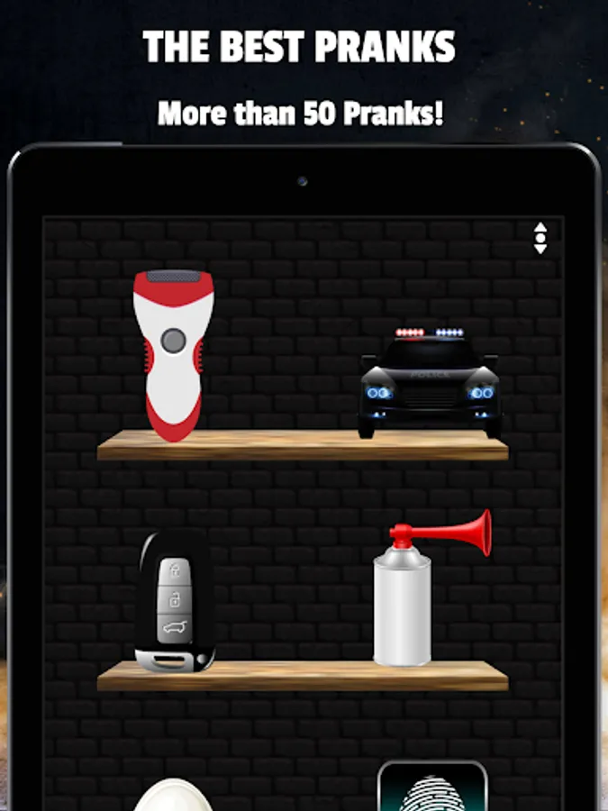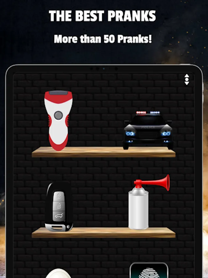 More than 50 different prank tools and funny things (razor prank, whip prank, funny sound effects, scary pranks, clipper, fart, air horn sounds and many more) combined in one app.