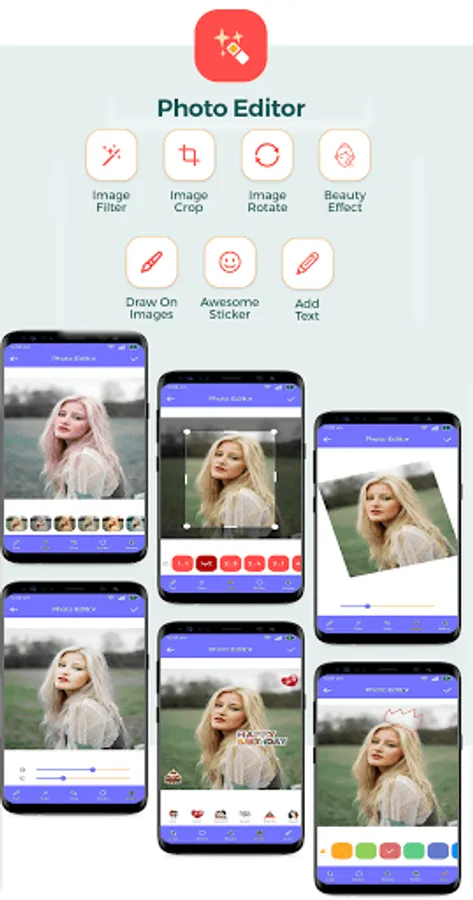 ✔️ Photo Editor with all new photo filter with beauty filter, stickers, add text , Image Cropper & rotate image and more