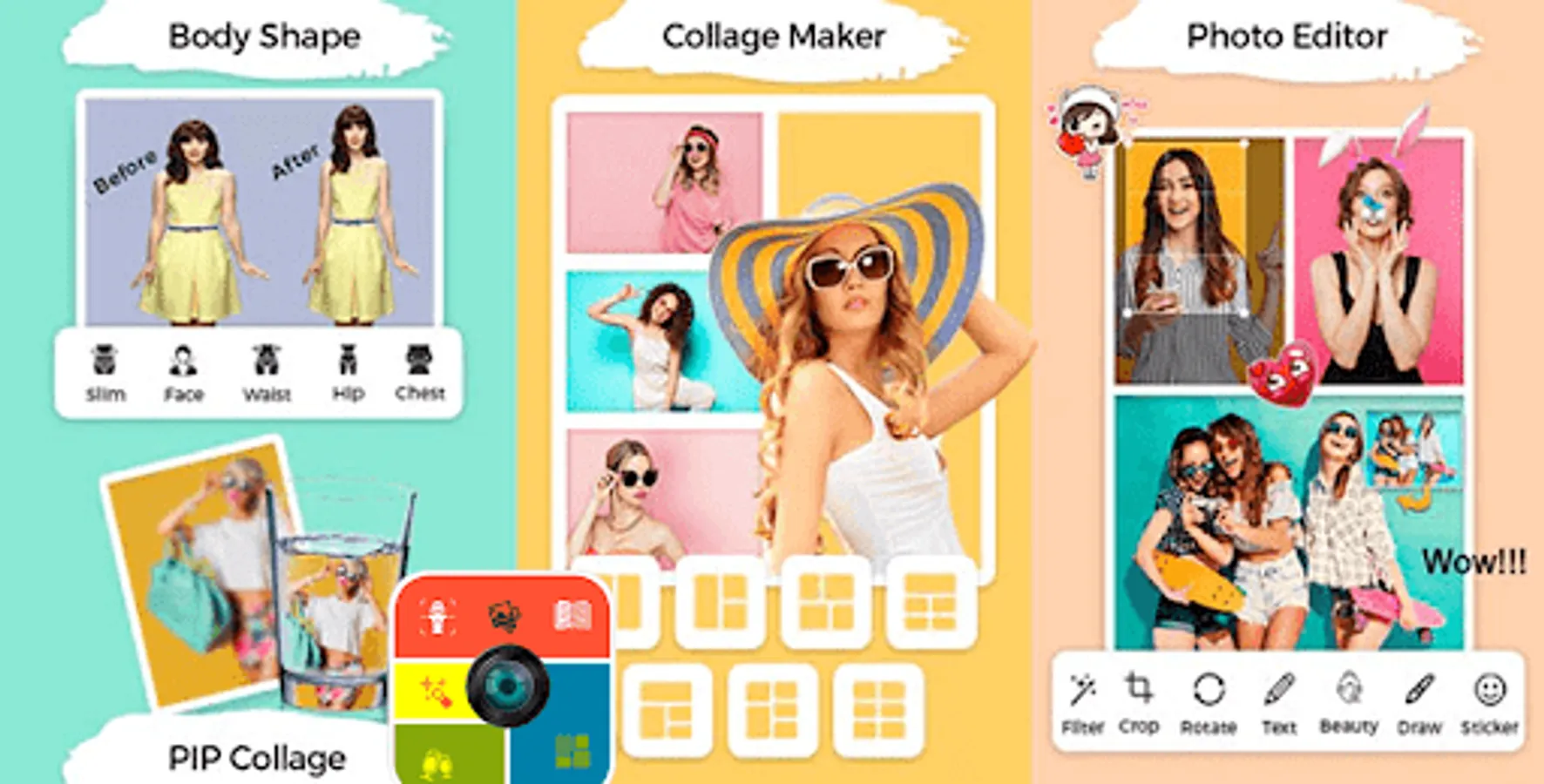 PIP & Photo Collage Maker With Photo Editor & Body Shape Editor is for Make PIP image, Photo collages& edit your photo and make perfect body shape slim & trim with all new features.