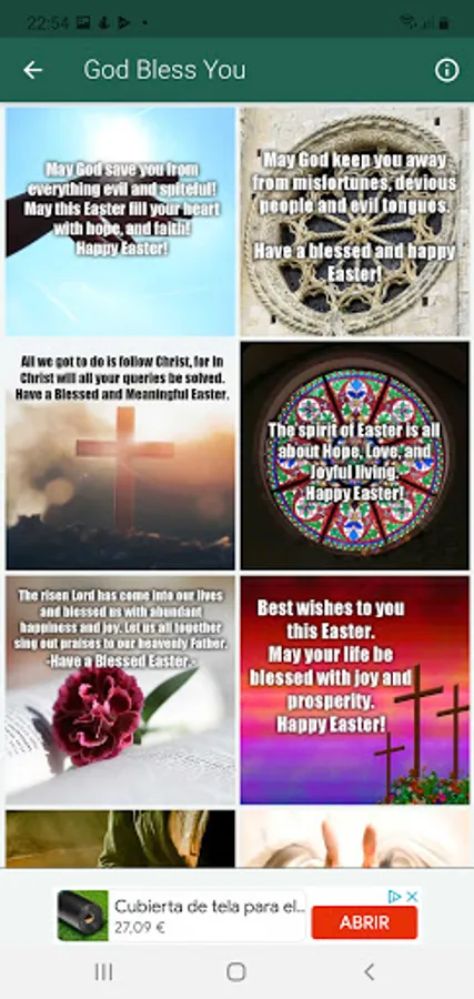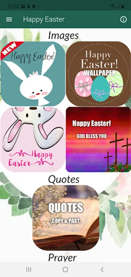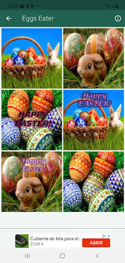 With our beautiful images you can congratulate all your loved ones on Easter or share on your social networks. It is a very complete application in which you can find: Beautiful postcards to congratulate Easter, wallpapers of eggs and rabbits, beautiful images with religious phrases, phrases to copy and paste and prayers of this beautiful time of year.