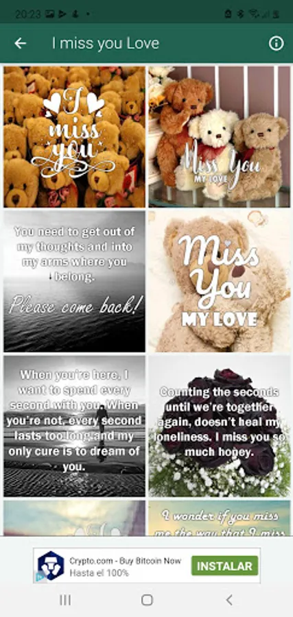 Do you miss your love and want to remind her? With this application you can do it, send messages to your love with beautiful images of "I miss you my love"