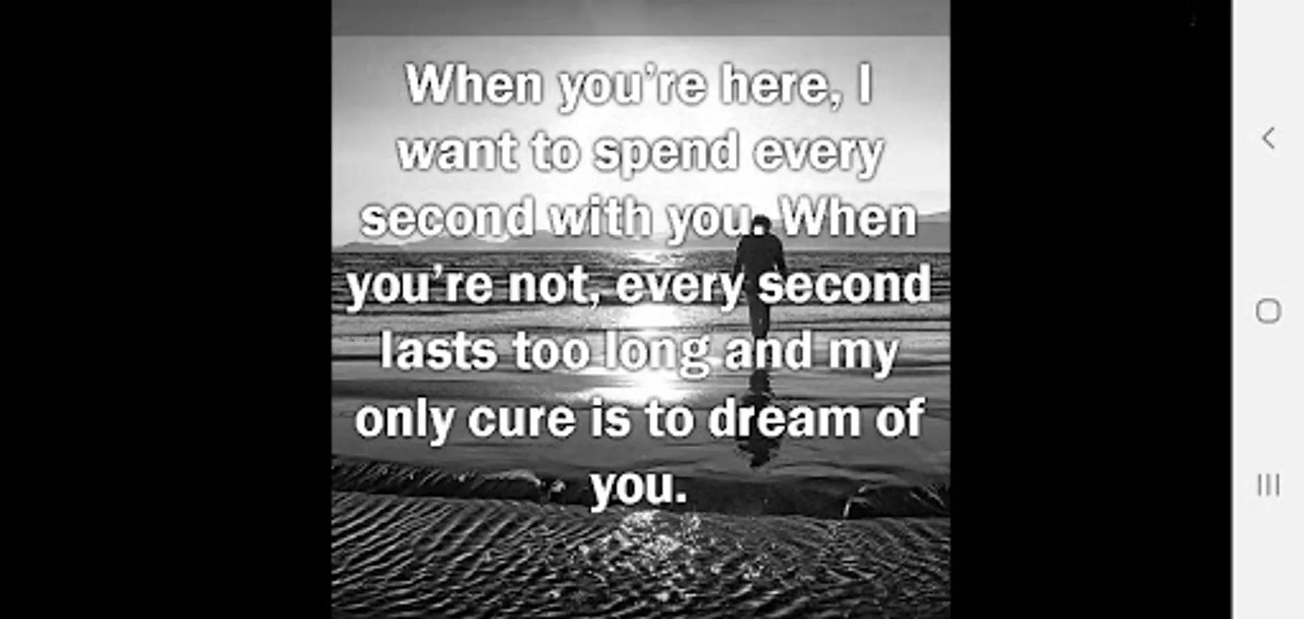 Your love is like the air. I will never stop wanting more and more, but I can't touch it, because you are far away and I miss you so much, but when you are here, I want to spend every second with you. When you're not, every second lasts too long and my only cure is to dream of you. With your arms around me, it feels like home and now I'm homesick. I miss you my love!