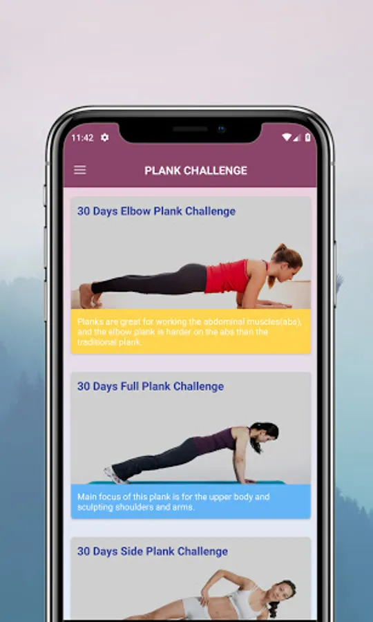 The plank is an isometric core strength exercise that involves maintaining a push-up-like posture for the greatest possible time. Users can spent time on doing the exercise slowly increases day by day followed the schedule in Plank Challenge app.