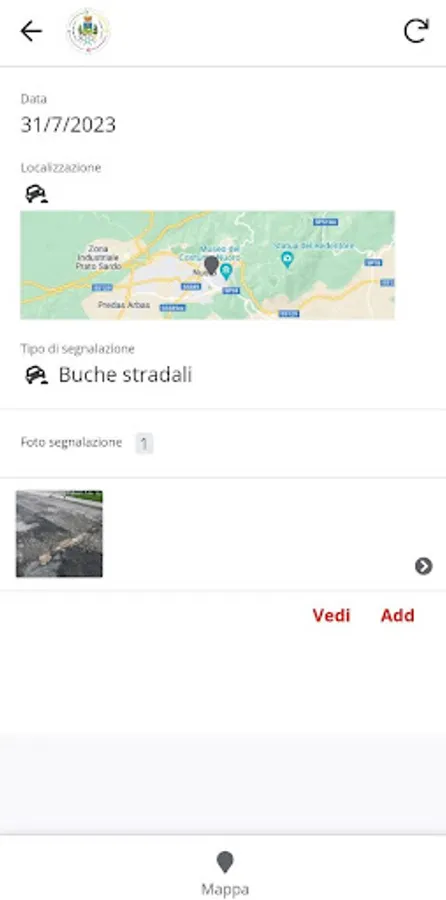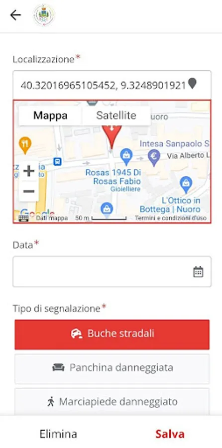 With Nuoro Cittadinanza Attiva you can send reports to the municipal administration anonymously. The municipal technicians will verify the data and take charge of the work. Unverified reports are identified in red while those deemed valid by the administration are displayed in green.