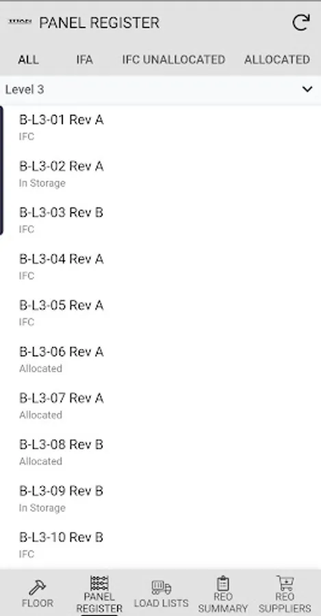 This app if for drawing management, material management, production management, transportation management and panel install date allocation.