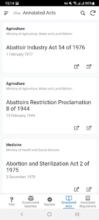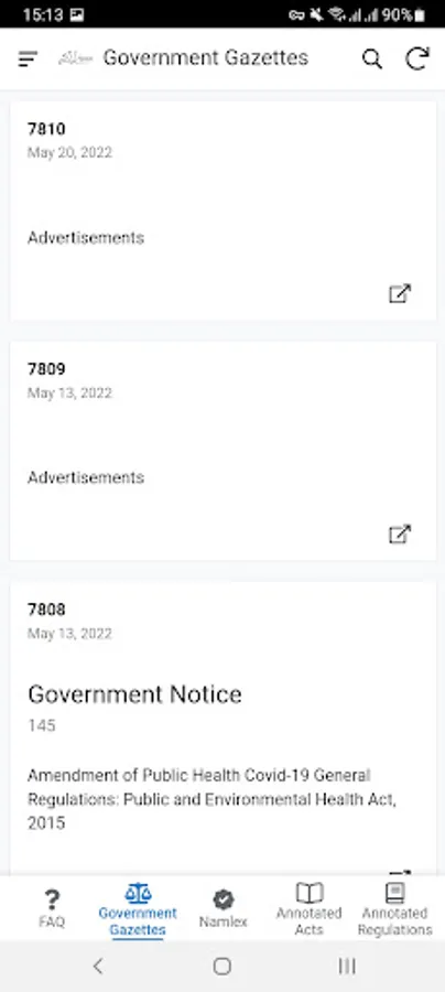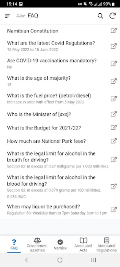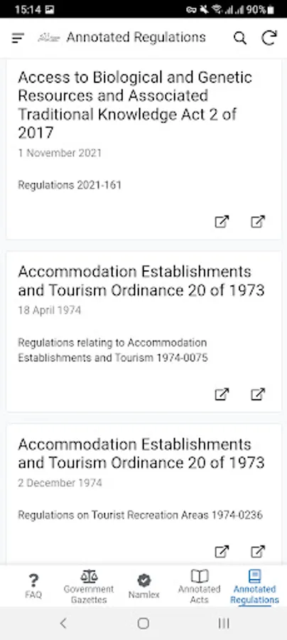 Namlex Pocket Law is the most comprehensive collection of Namibian annotated legislation online and now in your pocket. The collection includes Annotated Acts, Annotated Regulations, frequently asked legal questions, and all Government Gazettes from 21 March 1990 to the latest publication in an easy-to-search format with links to the legislation for download. The App also gives you unlimited access to a categorised index of legislation and court cases. No other source is as accurate.