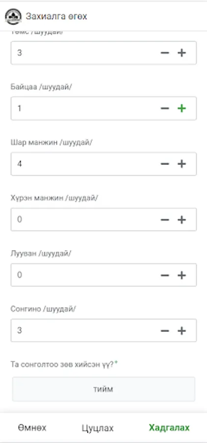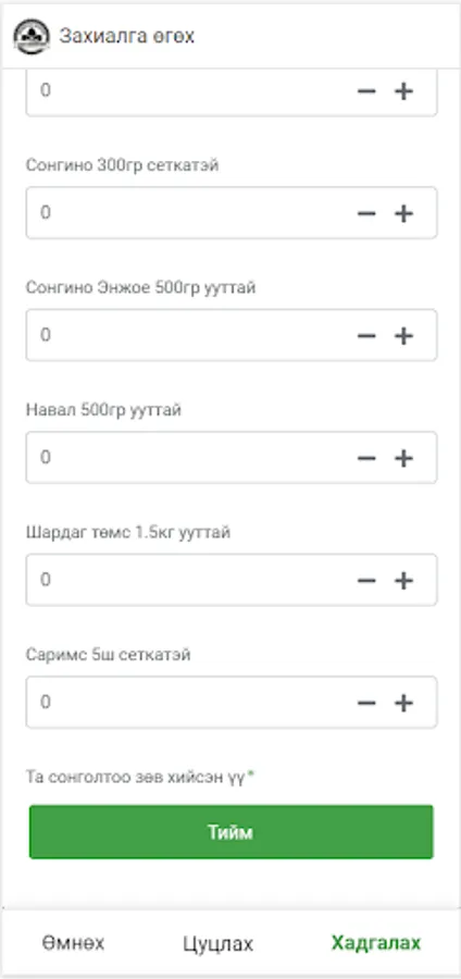 Монголын Хөдөөг Шинэчлэх Фермерүүдийн Холбооноос хүнсний ногоо захиалах апп. Энэхүү апп дээр бүртгэл, төлбөр байхгүй ба зөвхөн МХШФХ-тэй гэрээтэй супермаркет, дэлгүүрүүд имэйлээр авсан нэр, нууц үгээ ашиглан нэвтэрч хүнсний ногоо захиалах боломжтой.