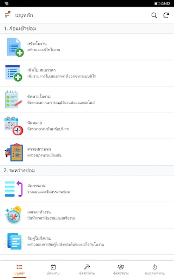 This app is intended to be used to record and plan the mechanic's work. Inside the Isuzu standard paint and body repair center of Isuzu Andaman Sales Co., Ltd.