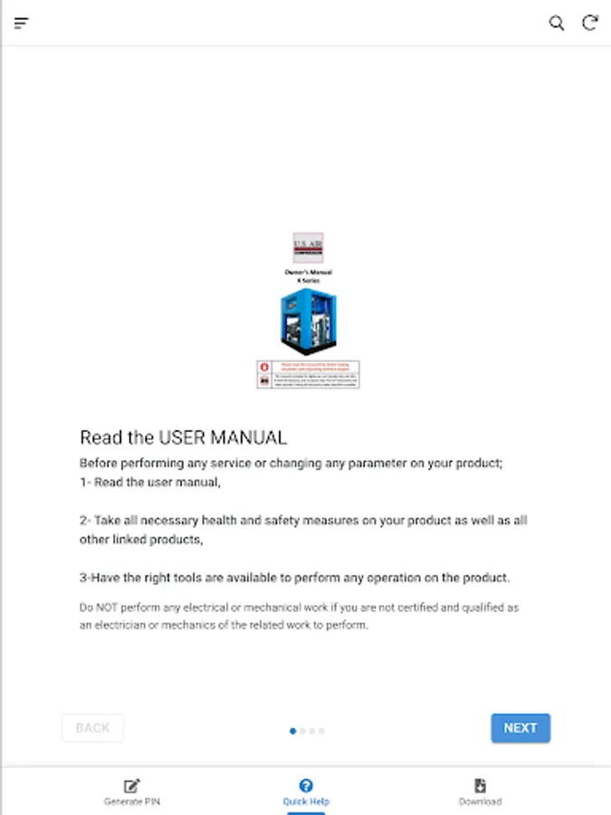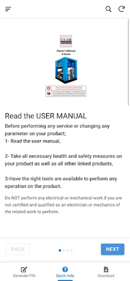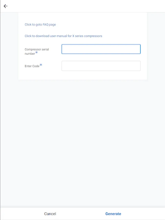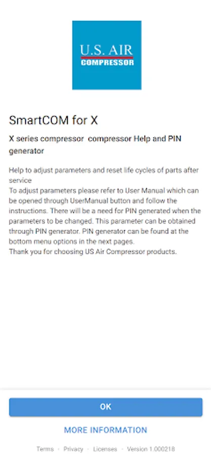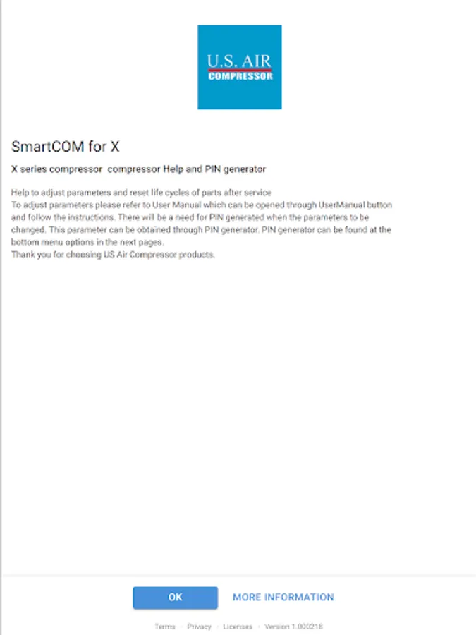 Pin generator and user manuals for /X series Us Air Compressor