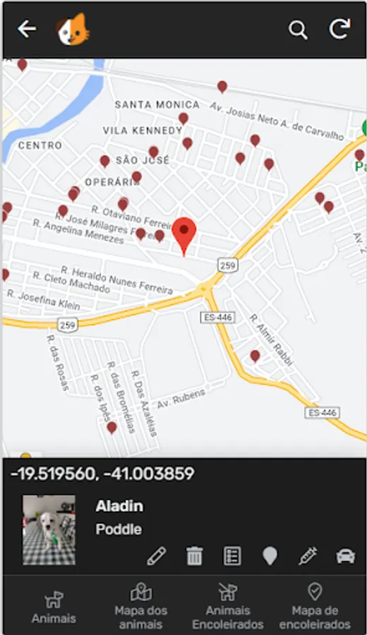 Through our application, the qualified professional and in accordance with biosafety techniques and current legislation, will be able to have total optimized and digitized control in the palm of the hand, creation of files, collection of biological material, occurrences, visits, collaring, clinical signs, vaccine card, GPS location. It is linked to Google Maps to create routes and works with all the information stored in NUVEM for the best performance and information security.