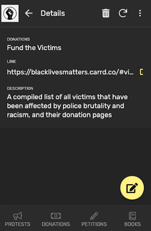The app contains information regarding relevant petitions, donation pages, protest locations, books, films, podcasts and key figures in the movement.