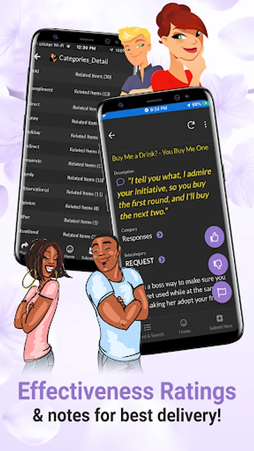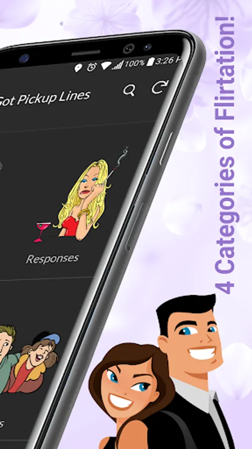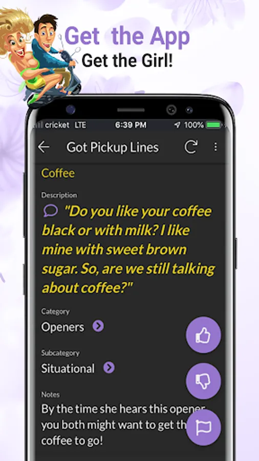 This amazing app is currently loaded with over fifteen hundred quality field tested lines, including various types, with more added each month. You'll have the perfect line for almost any situation you might encounter. Never run out of things to say.