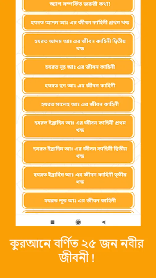 কুরআনে বর্ণিত ২৫ জন নবীর জীবনী অডিও কাহিনী নিয়ে আমাদের এই অ্যাপ। এই অ্যাপে পাবেন পবিত্র কুরআনে উল্লেখ আছে এমন ২৫ জন নবীর কাহিনী।