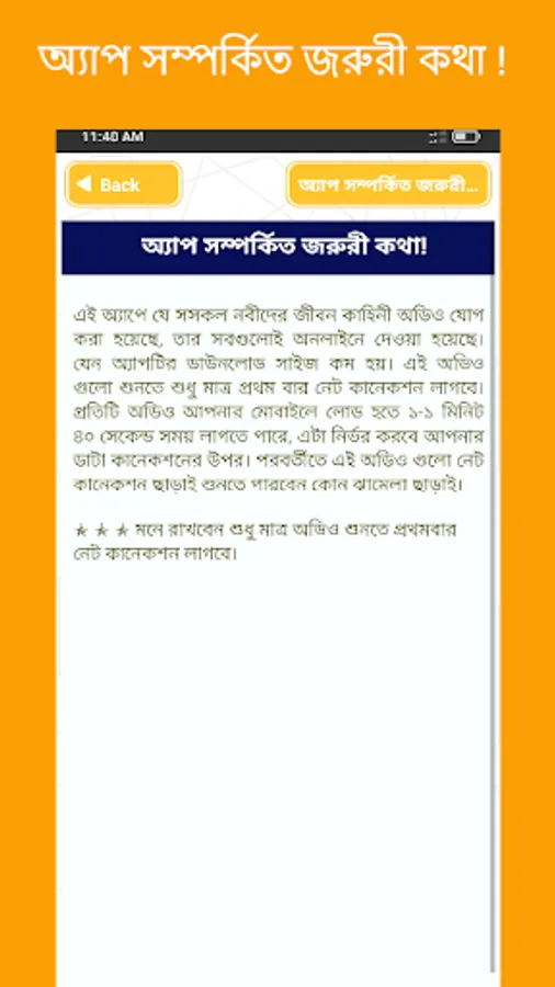 আমাদের এই অ্যাপে পাবেন নবীদের জীবন কাহিনী অডিও সহ। আশাকরি, nobider jiboni নবীদের জীবন কাহিনী audio mp3 গুলো আপনাদের ভালো লাগবে ও এর থেকে শিক্ষণীয় বিষয় গুলো আমাদের উপকারে আসবে ইনশাআল্লাহ্। অ্যাপটি ভালো লাগলে বন্ধুদের সাথে শেয়ার করুন অ৫ স্টার রিভিউ দিয়ে আমাদের উৎসাহিত করুন।