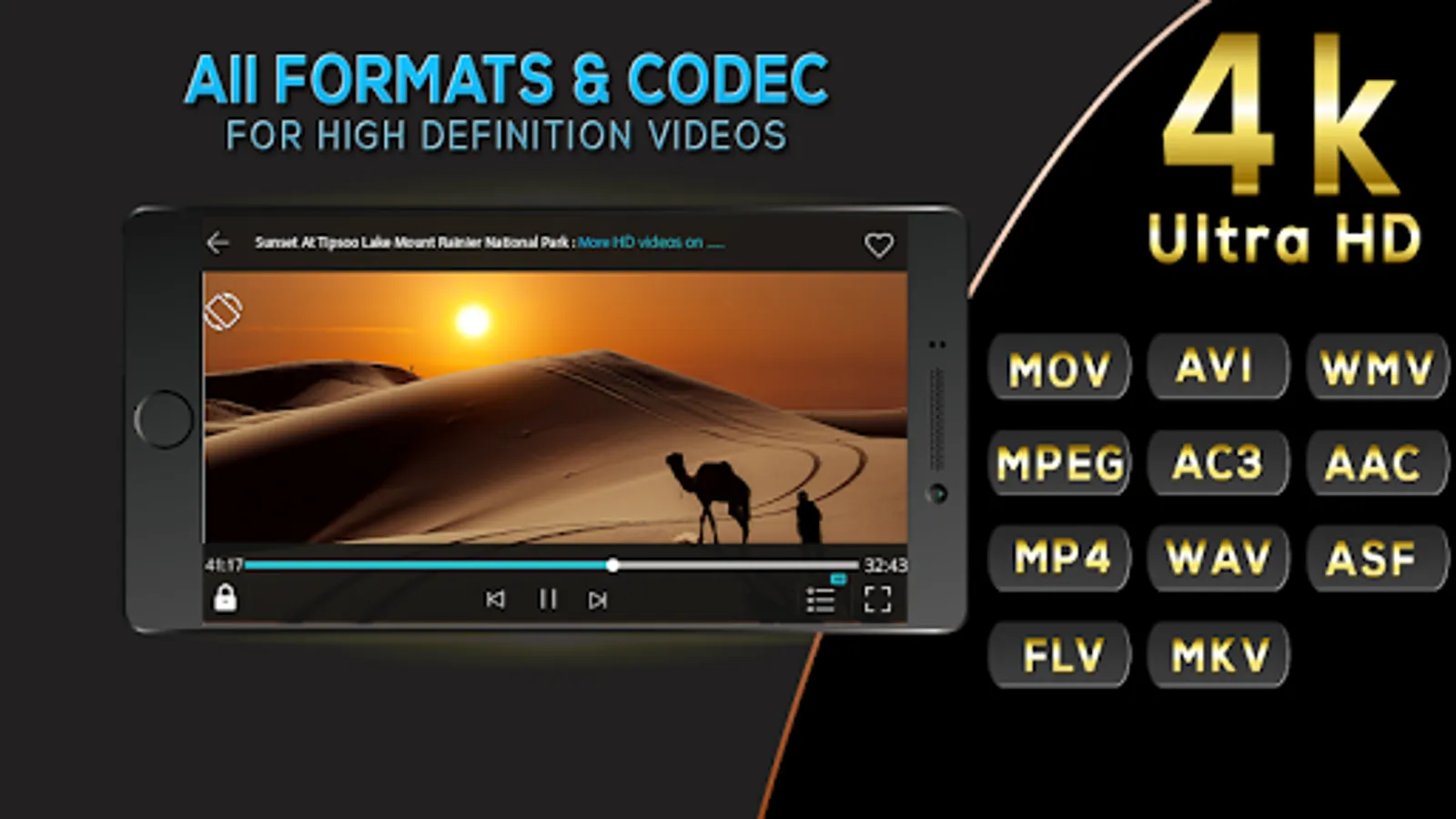 Video player supports all video formats including AVI , MP4 , WMV , RMVB , MKV , 3GP , M4V , MOV , TS , MPG , FLV etc. Video player also protects your private video from being deleted or seen when people use your device. It supports ALL video formats, 4K/ultra HD video files, and plays them with high-definition. It is one of the best HD video player for android tablet and android phone.