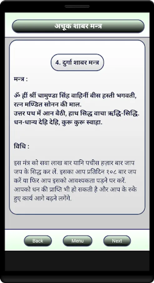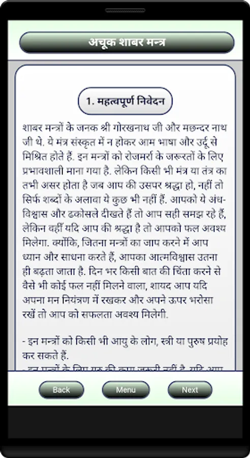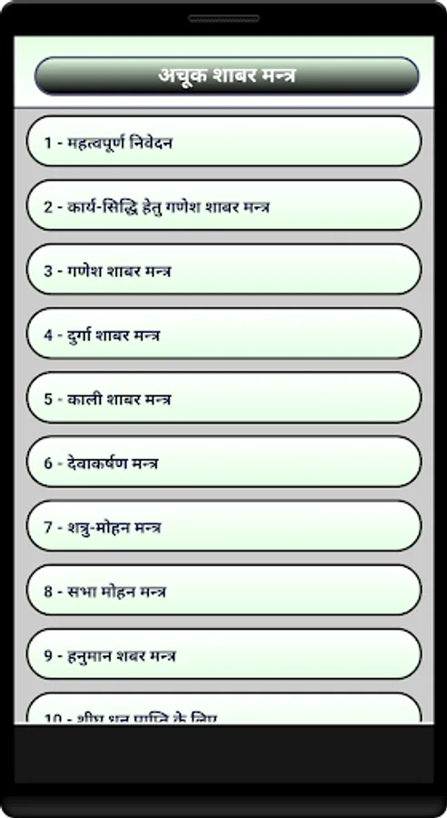 Presenting a unique app which contains a list of Shabar mantra(s) for resolving several problems in your life. Shabar mantra(s) were introduced by Gorakhnath and Machchhandra nath. These are mantras written in Hindi with Urdu and local languages. Anyone can use them and there is no need to meet any expert Guru or someone. If you have faith on these mantras, you will definitely get advantage out of them.