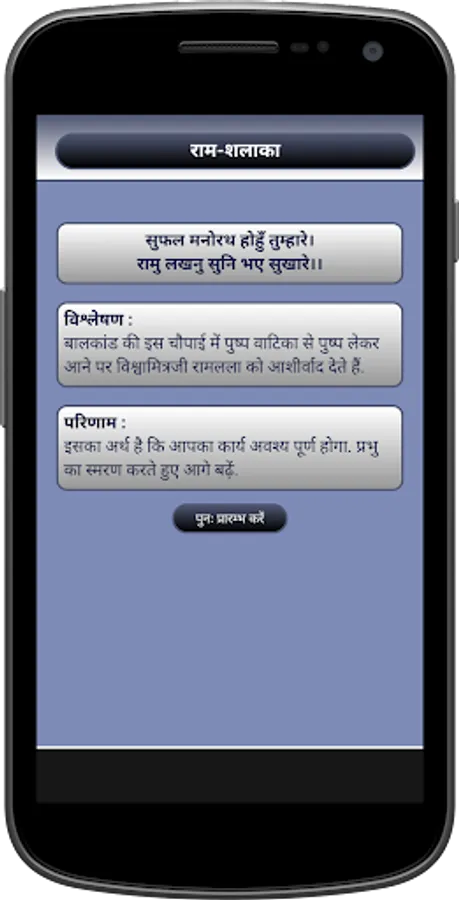 Presenting an app which can tell your future. Ram-shalaka was created by Tulsidas. This app can be used to get answer to all your questions which you are not able to solve. This will tell your future like a prophet or oracle and you get most of your questions answered.