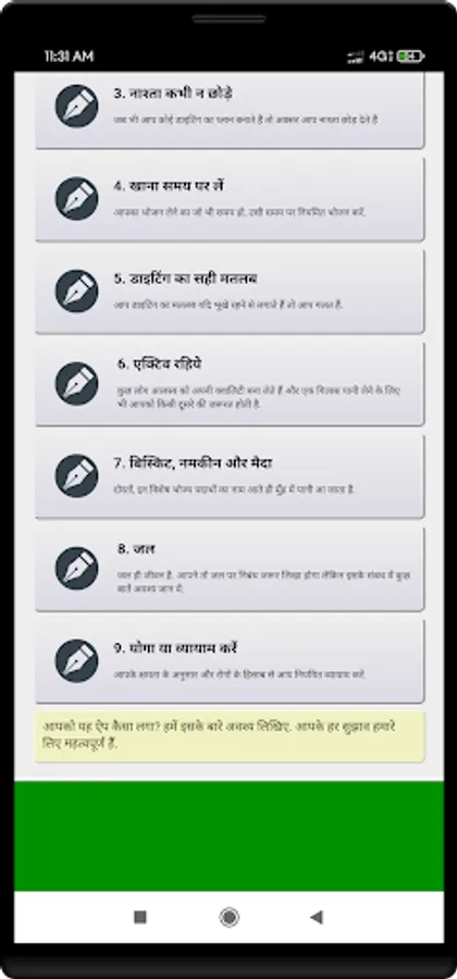 Presenting app in Hindi how to create a dieting plan. It includes many new ideas that might help you in getting good health, better shape of your body and good look.