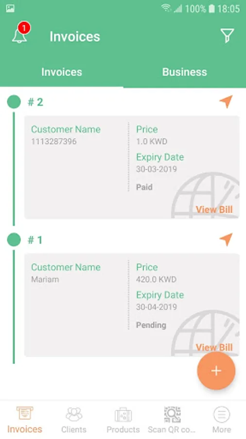 Once an invoice is created you can send them to your clients via SMS or a hyperlink.