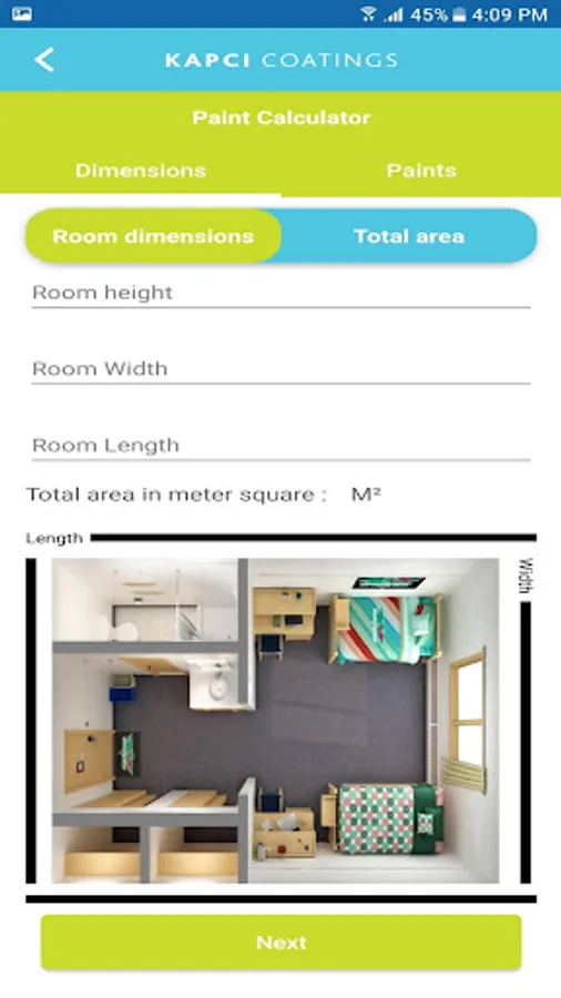 - Estimate paints volume in kg according to total area.