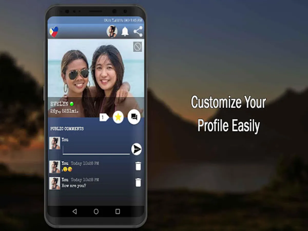 -Our App is completely free, we invite you to become part of our community to meet new people from Philippines, love online, singles near you and why not an ideal partner.