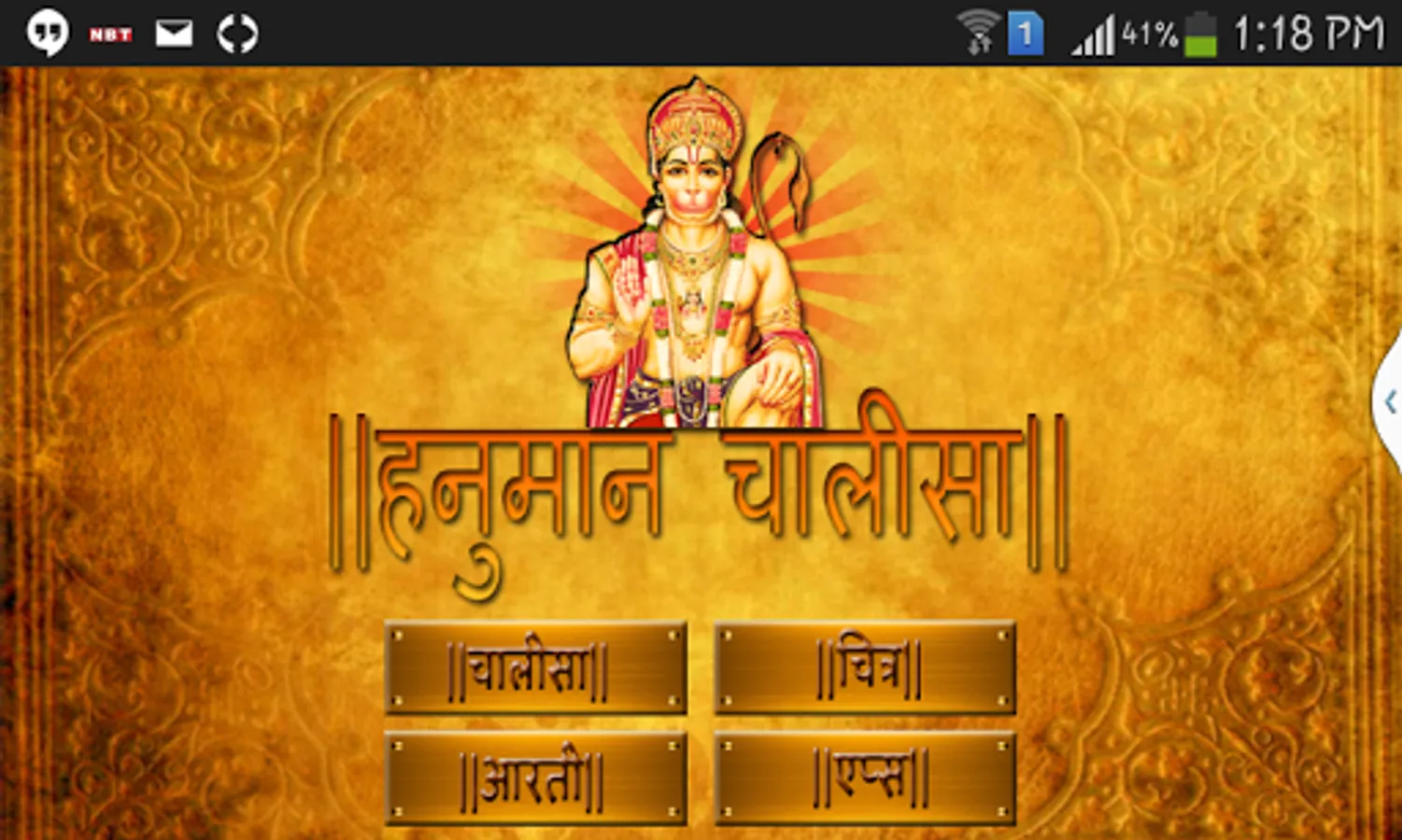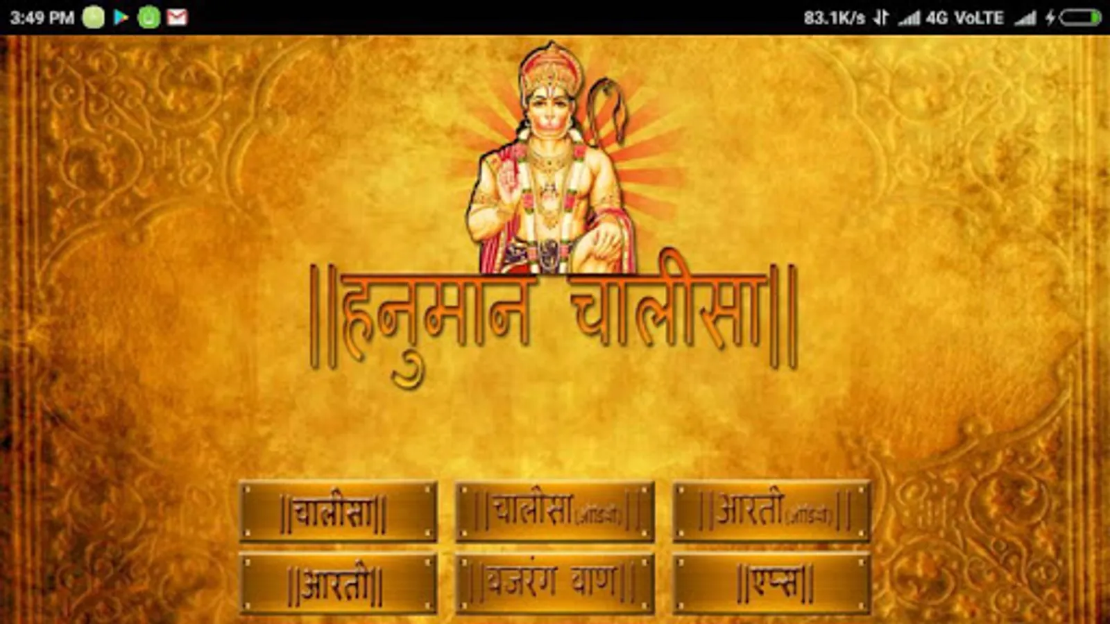 Read Complete Hanuman Chalisa and Aarti Book and Listen in an MP3 Format Hanuman Chalisa, Hanuman Baan, Hanuman Aarti first time in play store. You can read and listen both Shri Hanuman Chalisa daily at any time, in your car,office,travel,temple etc. This E-Book of Shri Hanuman Chalisa best features