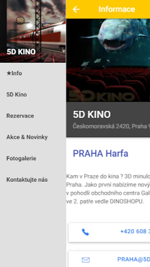 Where in Prague to the cinema? 3D past. Welcome the 5D cinema in Prague. The first to offer a new experience for the whole family in the comfort of shopping center Galerie Harfa. Find us on the 2nd floor next to DINOSHOPU.