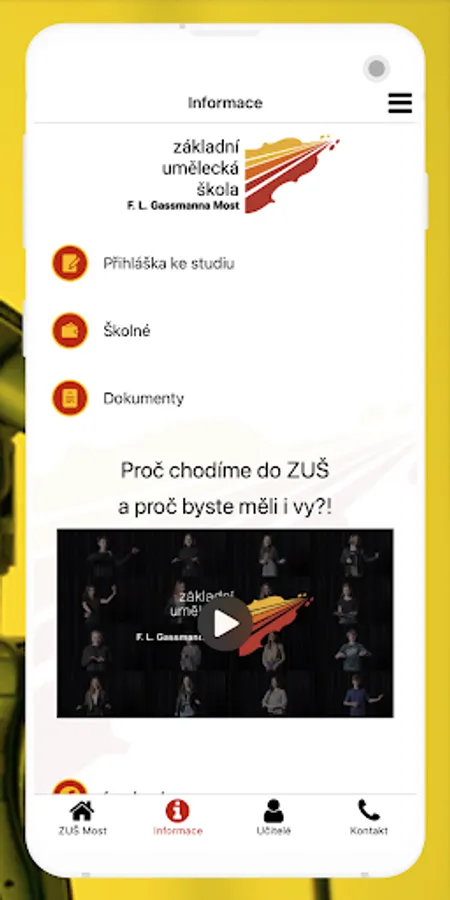 Gassapka is a mobile application of the F. L. Gassmann Elementary School of Art, Most. Do you want to study art? Choose from the field of music, art, dance or literary drama.