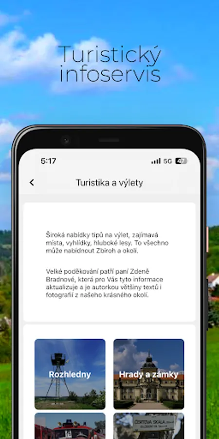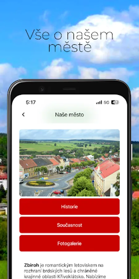 Have your city in your phone. As a citizen and as a tourist, you can now download the practical mobile application of the city of Zbiroh to your phone. Important messages, fault reports, complete contacts, city activities, news, tourist information service and much more clearly on your phone.