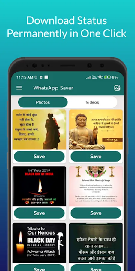 Whatsapp status saver app can help you download whatsapp status videos and photos in easy steps. super fast and 100% free.You can save videos and pictures from whatsapp status.