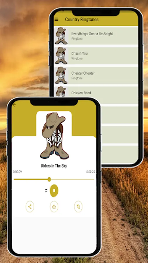 Enjoy and share Country Ringtones with a wide variety of music, thus being a great collection of classic and recent Country from great artists of this genre.