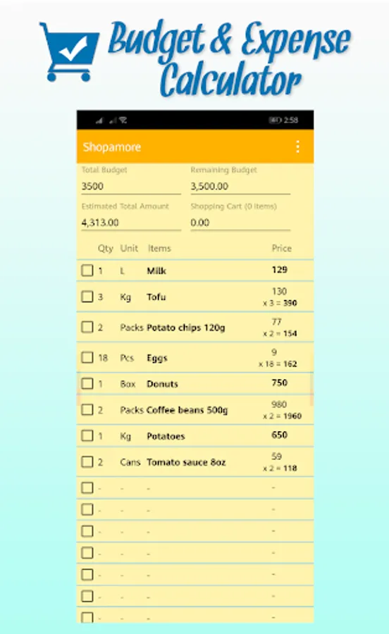 *Actual Grocery Shopping Cart Cost Calculator