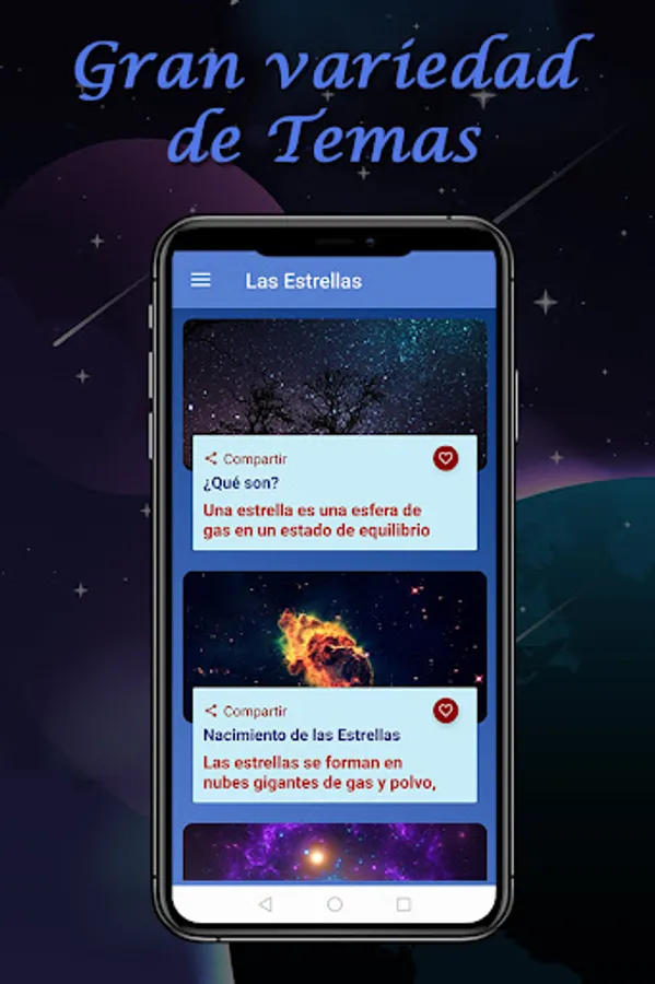 • The Planets: Delve into each of the fascinating planets that orbit the Sun. Explore their composition, unique characteristics and interesting facts that will amaze you. Get ready to discover everything from gas giants to small rocky worlds!
